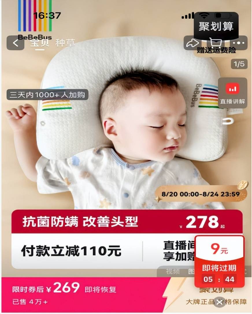 而在BeBeBus的官方旗舰店,该款定型枕的售价为269元,这意味着,一款定型枕将近80%是商标溢价。
